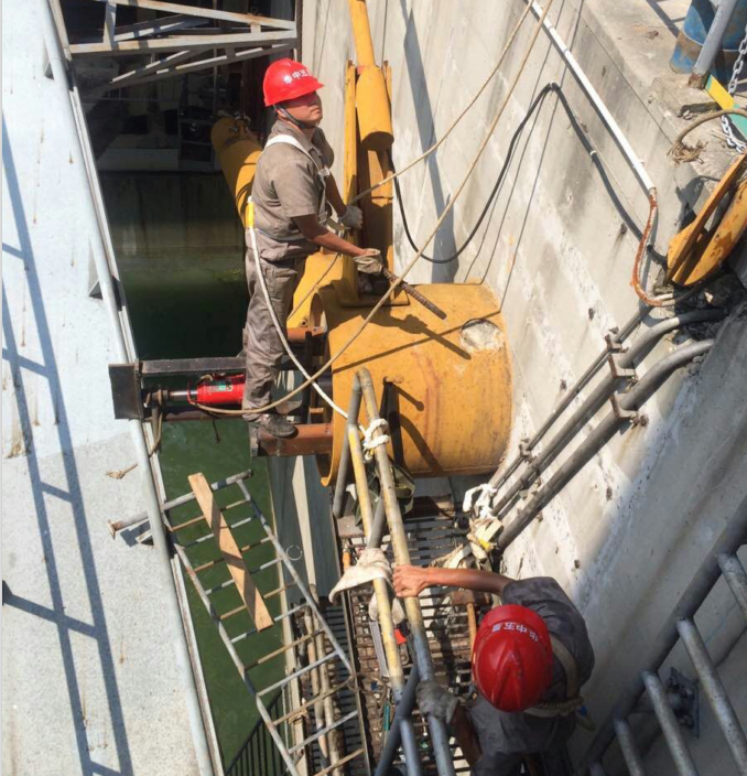 頂著酷暑,我公司兩名操作員身系安全帶、頭戴安全帽,在室外40度的高溫下,排除重重困難,在水電站大壩上拆卸油缸。為客戶貼心的
